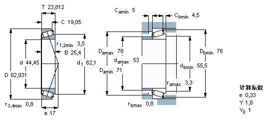 型號:25580/25520/Q 品牌:SKF 系列:單列圓錐滾子軸承 內徑:44.45 mm 外徑:82.931 mm 寬度:23.812 mm