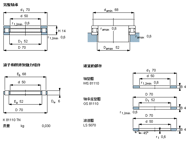 型號(hào):81110 TN 品牌:SKF 系列:圓柱滾子推力軸承的完整軸承/滾子和保持架推力組件 內(nèi)徑:50 mm 外徑:70 mm 寬度:14 mm