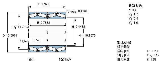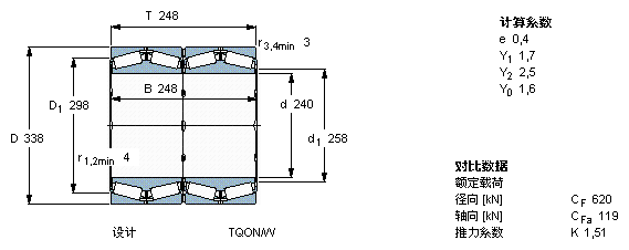 型號(hào):BT4-0020/HA1 品牌:SKF 系列:TQO配置的四列圓錐滾子軸承 內(nèi)徑:240 mm 外徑:338 mm 寬度:248 mm