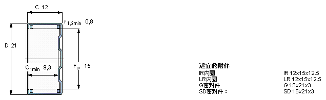 型號(hào):BK 1512 品牌:SKF 系列:沖壓外圈滾針軸承 內(nèi)徑:15 mm 外徑:21 mm 寬度:12 mm
