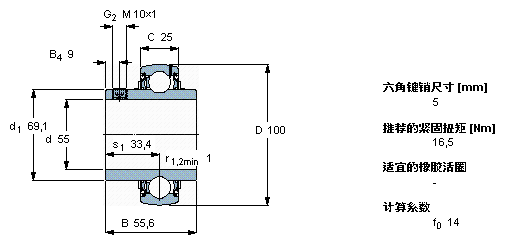 型號:YAR 211-2F 品牌:SKF 系列:帶沉頭螺釘?shù)?Y 型軸承 內(nèi)徑:55 mm 外徑:100 mm 寬度:55.6 mm