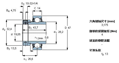型號:YEL 204-012-2FCW 品牌:SKF 系列:用偏心鎖定環(huán)的 Y 型軸承 內(nèi)徑:19.05 mm 外徑:47 mm 寬度:43.7 mm