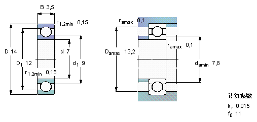 型號:W 618/7 品牌:SKF 系列:不銹鋼單列深溝球軸承 內徑:7 mm 外徑:14 mm 寬度:3.5 mm