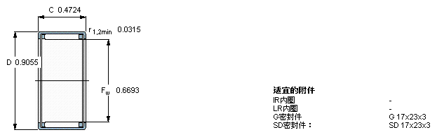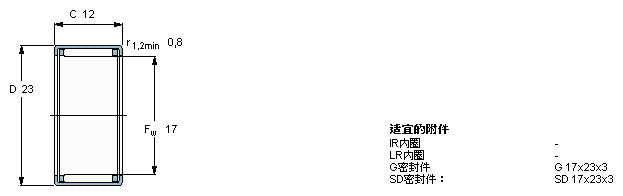 型號:HK 1712 品牌:SKF 系列:沖壓外圈滾針軸承 內(nèi)徑:17 mm 外徑:23 mm 寬度:12 mm