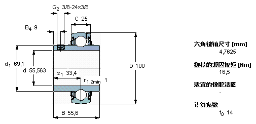 型號(hào):YAR 211-203-2F 品牌:SKF 系列:帶沉頭螺釘?shù)?Y 型軸承 內(nèi)徑:55.563 mm 外徑:100 mm 寬度:55.6 mm