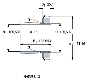 型號:SNW 126x4.5/16 品牌:SKF 系列:英制尺寸緊定套 內(nèi)徑:109.537 mm 外徑:130 mm 寬度:126.543 mm