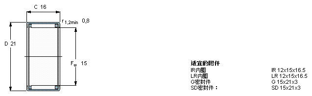 型號:HK 1516 品牌:SKF 系列:沖壓外圈滾針軸承 內(nèi)徑:15 mm 外徑:21 mm 寬度:16 mm