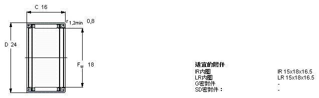 型號:HK 1816.2RS 品牌:SKF 系列:沖壓外圈滾針軸承 內(nèi)徑:18 mm 外徑:24 mm 寬度:16 mm