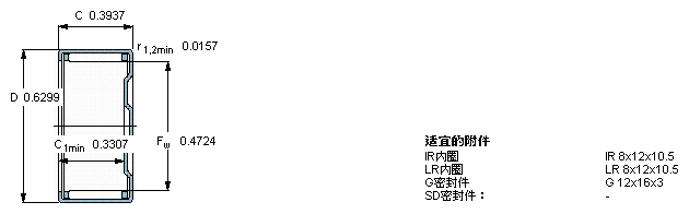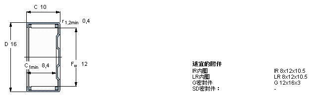 型號:BK 1210 品牌:SKF 系列:沖壓外圈滾針軸承 內(nèi)徑:12 mm 外徑:16 mm 寬度:10 mm